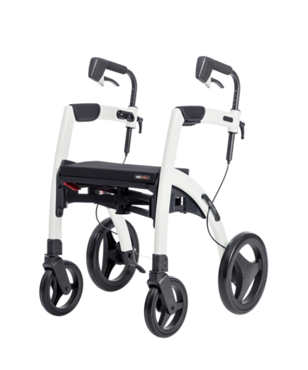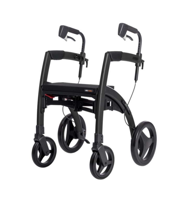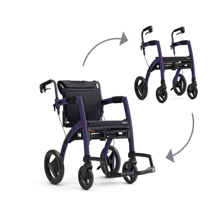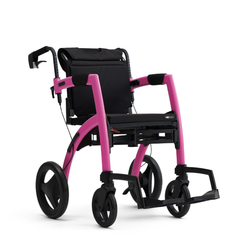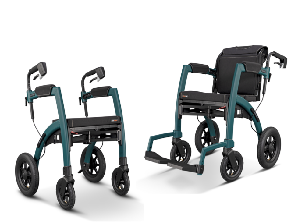 Le Rollz Motion 2-en-1 est une solution innovante combinant un rollator haut de gamme et un fauteuil roulant de transport en un seul produit. Conçu pour les personnes souhaitant conserver leur autonomie tout en anticipant les moments de fatigue, il permet de passer facilement de la marche assistée à une position assise poussée par un accompagnant.